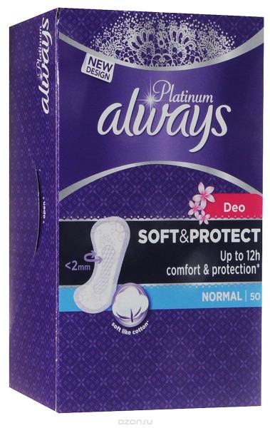 Ежедневные прокладки Always "Platinum Collection Deo Normal"с нежным ароматом обеспечивают превосходную защиту каждый день. Они состоят из нескольких впитывающих слоев, которые надежно запирают жидкость внутри прокладки, оставляя ощущение сухости и свежести.